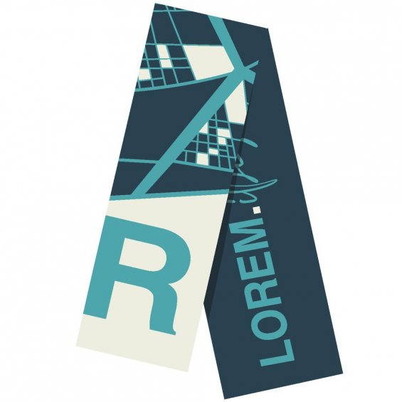 Шарф с вывязанным логотипом и индивидуальным рисунком в фирменной цветовой гамме.