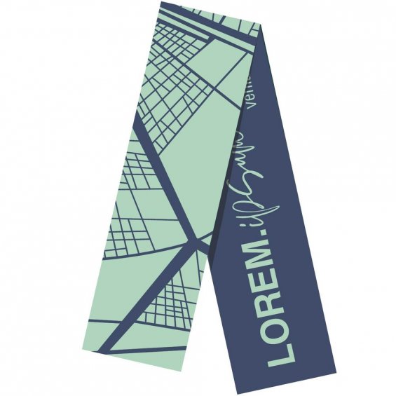 Шарф с вывязанным логотипом и индивидуальным рисунком в фирменной цветовой гамме.