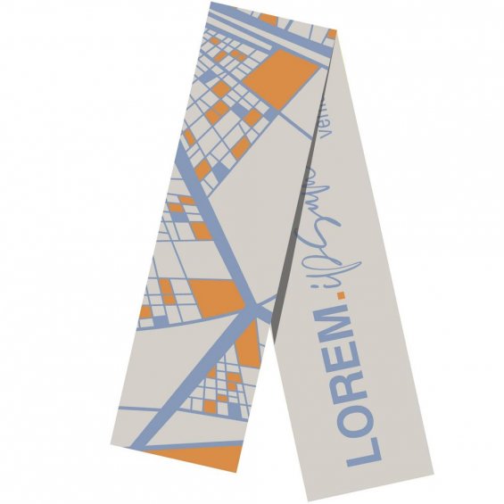 Шарф с вывязанным логотипом и индивидуальным рисунком в фирменной цветовой гамме.