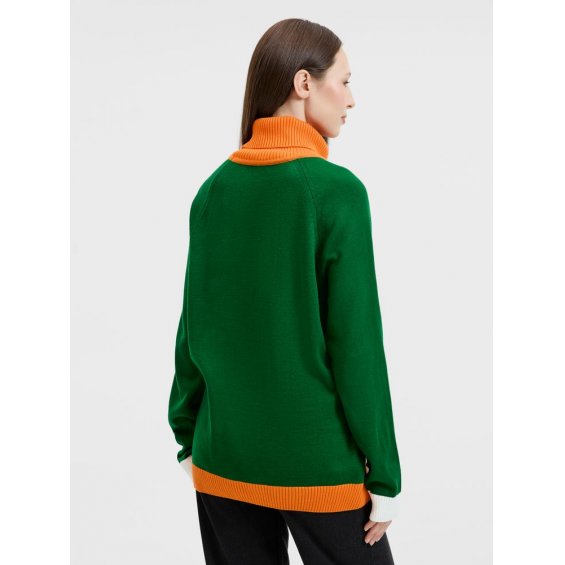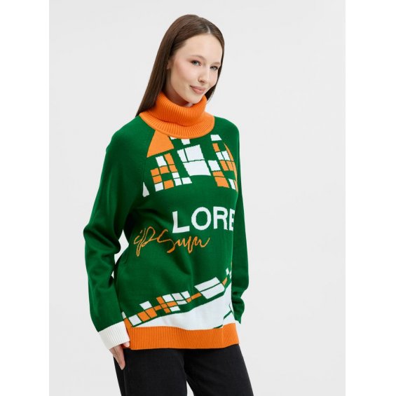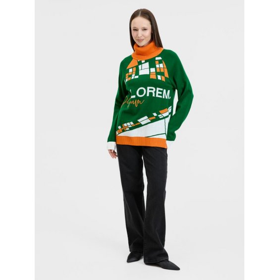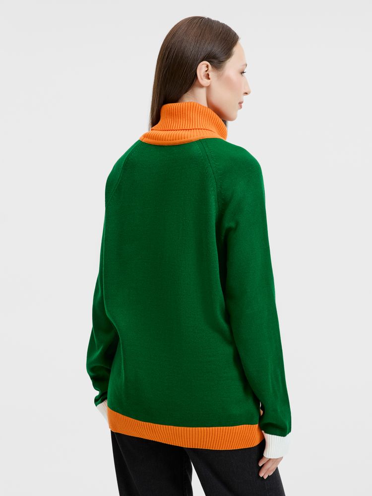 Джемпер с вывязанным логотипом и индивидуальным рисунком в фирменной цветовой гамме.