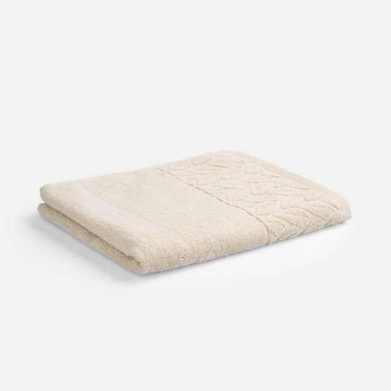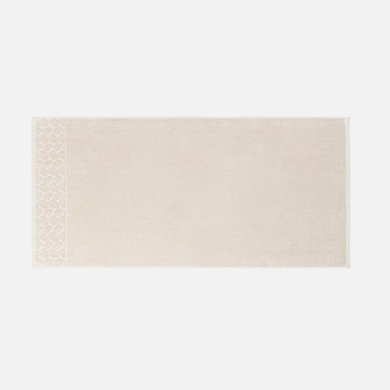 Светлые оттенки в сочетании с широким бордюром с рельефным растительным узором делают полотенце не только функциональным, но и эстетически привлекательным и элегантным.