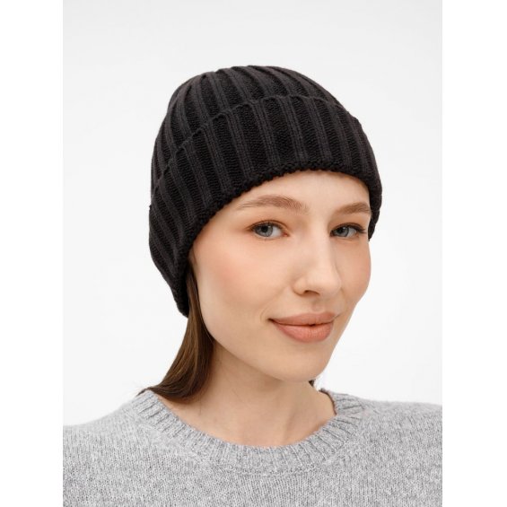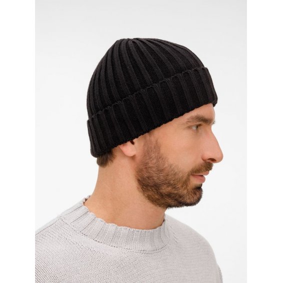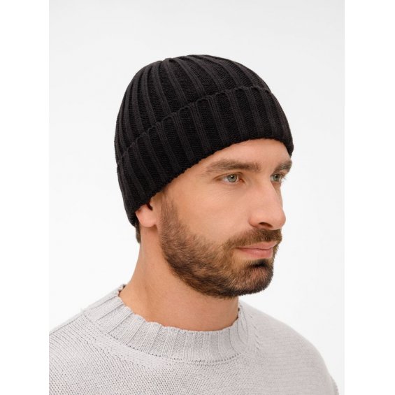 Однослойная шапка рельефной вязки с отворотом.