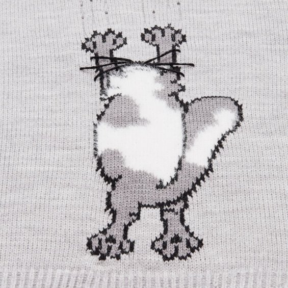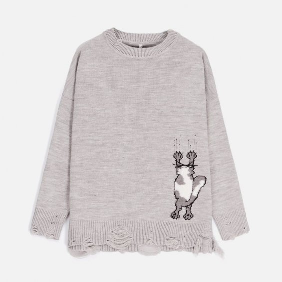В дизайне мягкого джемпера с круглым вырезом Sharpick гранж-эстетика органично сочетается с милым акцентом — пушистым рисунком в виде озорного котика. Получается веселая вариация на тему того, откуда берется модная рваная одежда, а джемпер моментально создает настроение легкой несерьезности. Рваные края изделия добавляют современную нотку, а резинка на вороте, манжетах и по низу обеспечивает удобную посадку.