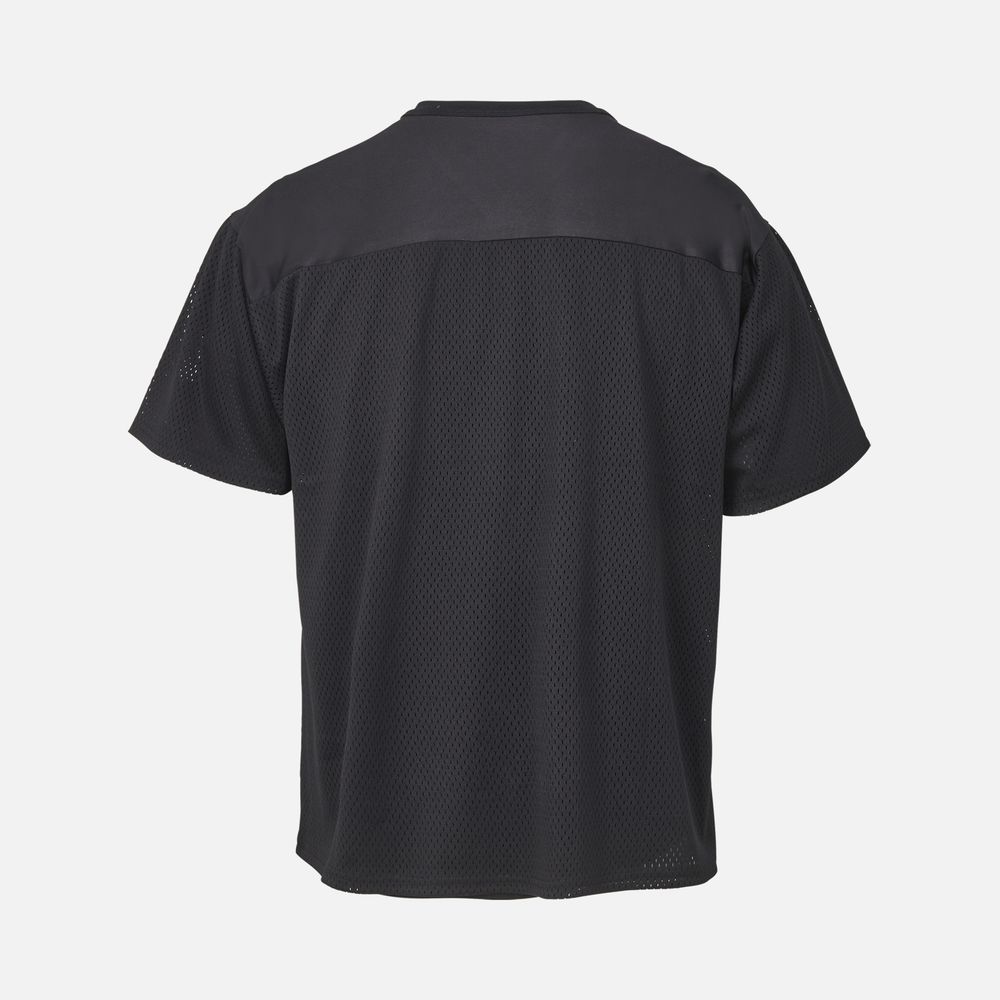 Современная оверсайз футболка, выполненная из спортивной сетки с крупной перфорацией. Благодаря оригинальному дизайнерскому крою станет прекрасным вариантом для уникального мерча.