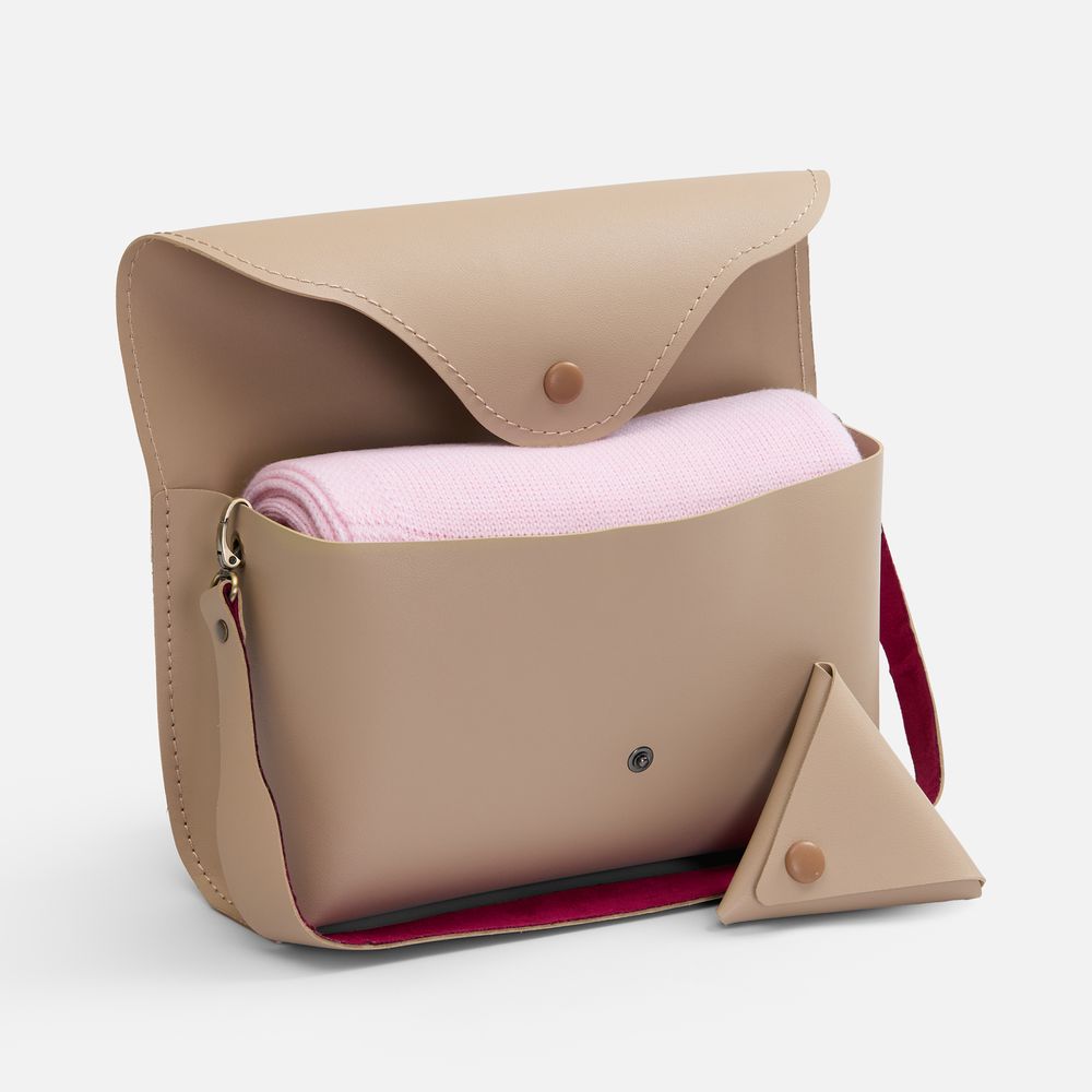 Плед поставляется в стильном кофре с аккуратным кошелечком на кнопке — продуманная деталь для удобного хранения и бережной транспортировки. Такой плед легко взять с собой в путешествие, он станет вашим любимым спутником в прохладное время года.