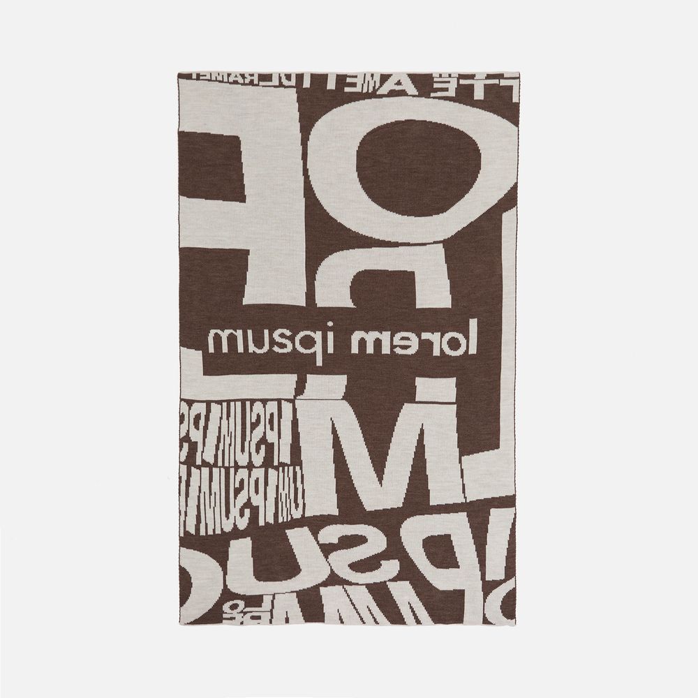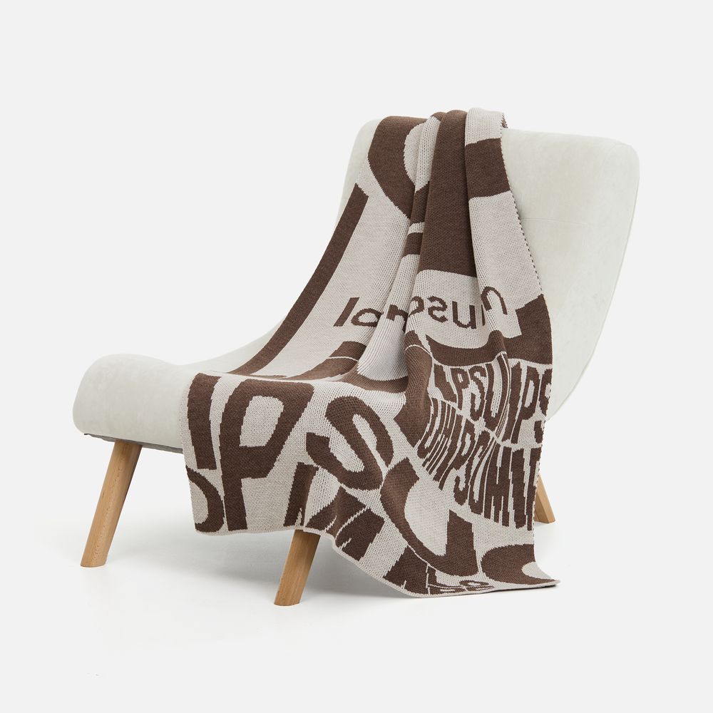 Плед с вывязанным логотипом и индивидуальным рисунком в фирменной цветовой гамме.