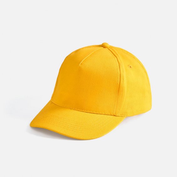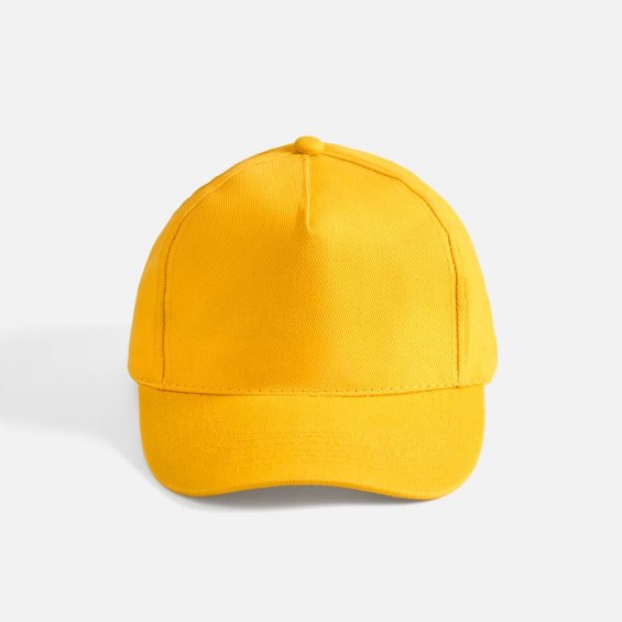 Модель бейсболки с 5-ю клиньями без лобового шва из плотного чесаного хлопка.